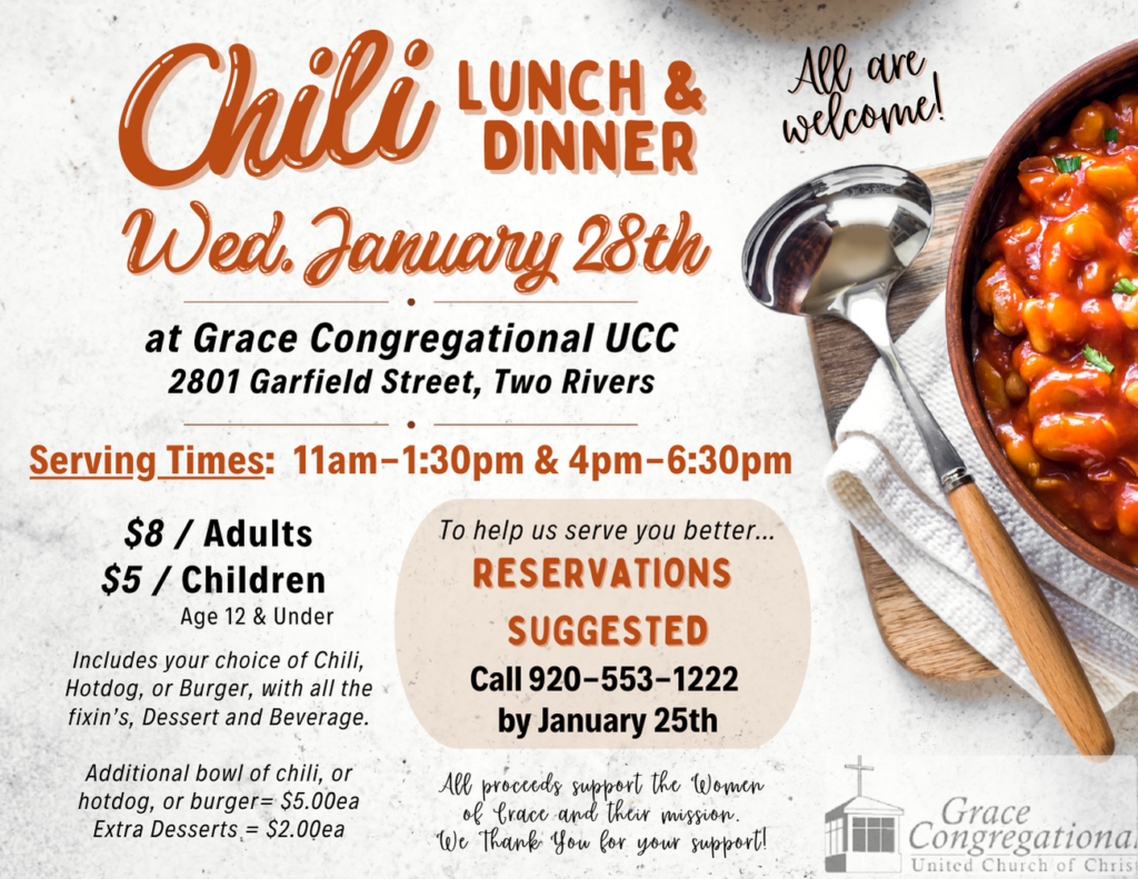 Thank you to all who supported the Women of Grace and their Annual Chili Lunch & Dinner Fundraiser, which was held on Wed. January 28th.